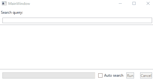 Вопрос здесь может вызвать ProgressBar. Я хотел, чтобы он включался в процессе поиска. Но в команде Search свойство IsExecuting — не bool, а последовательность, и сделать к ней привязку в XAML не выйдет. Поэтому привязку выполним в конструкторе нашей вьюхи: