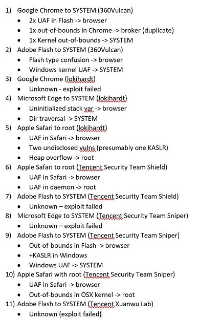 Эксплуатация широко распространённого клиентского ПО, включая браузеры или Adobe Flash, представляет собой цепочку уязвимостей, техник и подходов. Достаточно посмотреть на небольшую подборку того, как они ломались на pwn2own 2016: