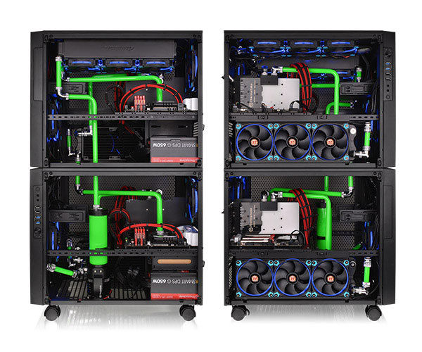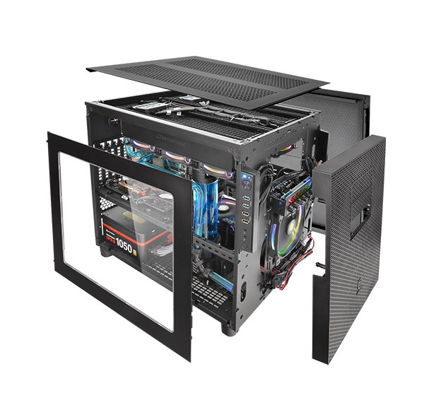 Компания Thermaltake представила компьютерные корпуса Core X5 и Core X5 Riing Edition, рассчитанные на системные платы размером вплоть до E-ITX. Характерной чертой Core X5 и Core X5 Riing Edition является разделение пространства на два отсека. Нижний отведен для блока питания и накопителей, а верхний — для системной платы и карт расширения. Кроме того, можно отметить вместительность, модульное устройство, возможность размещения нескольких корпусов столбиком.