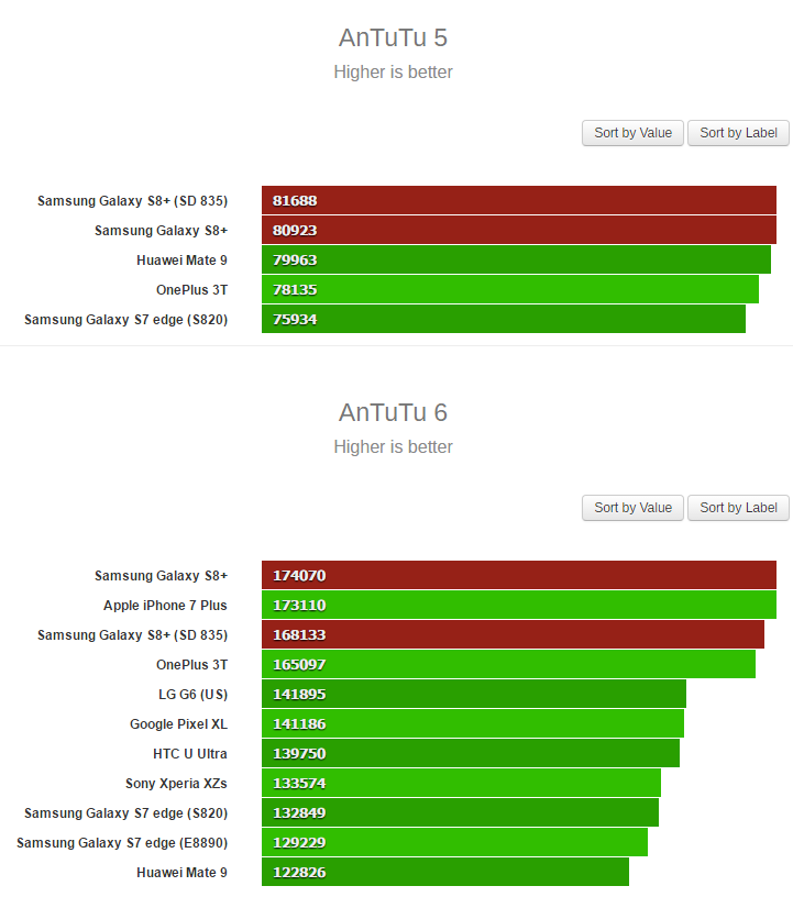 Вчера мы узнали, что автономность смартфона Samsung Galaxy S8 с SoC Exynos 8895 ощутимо лучше, чем у версии с SoC Snapdragon 835. Сегодня в Сети появились прочие тесты, в которых сравнили две версии нового флагмана корейской компании.