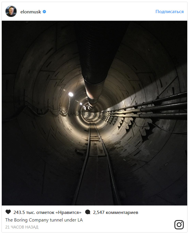 Как известно, компания Boring Company Илона Маска бурит тоннели под Лос-Анджелесом. О том, как продвигается работа, можно судить по снимку, опубликованному Маском.