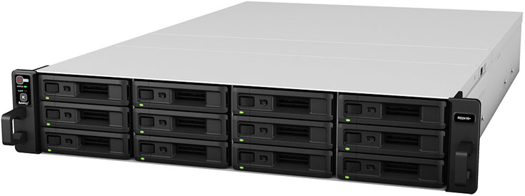Показанное на иллюстрации хранилище данных RackStation RS2416+ представила компания Synology. Говоря точнее, одновременно представлены две модели — RackStation RS2416+ и RS2416RP+. Отличие RackStation RS2416RP+ заключается в наличии резервного блока питания.