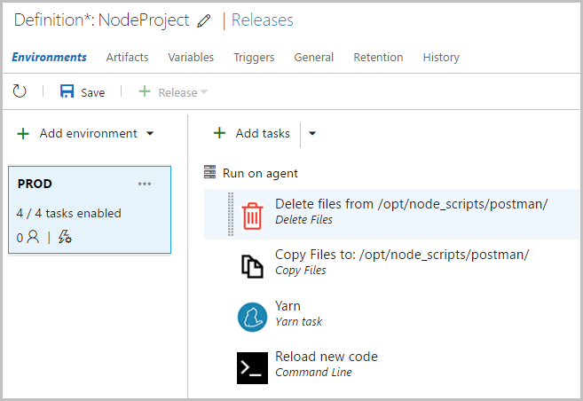 В общем случае процесс CI/CD настраивается не тривиально, и настройка сильно различается в зависимости от технологий разработки и места размещения проекта. Мы рассмотрим самый простой случай для Node.JS приложения, размещаемого на локальном сервере, чтобы понять принципы работы с CI/CD в системе VSTS.