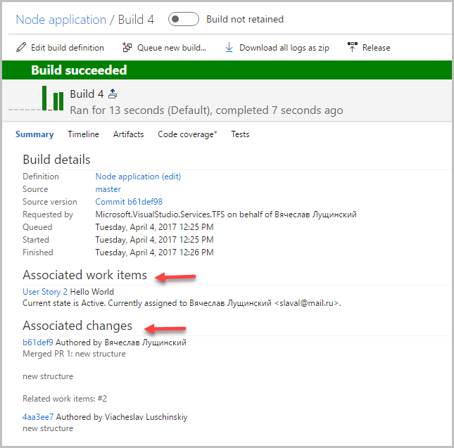 На этом знакомство с процессом настройки VSTS для работы с кодом и задачами можно закончить.