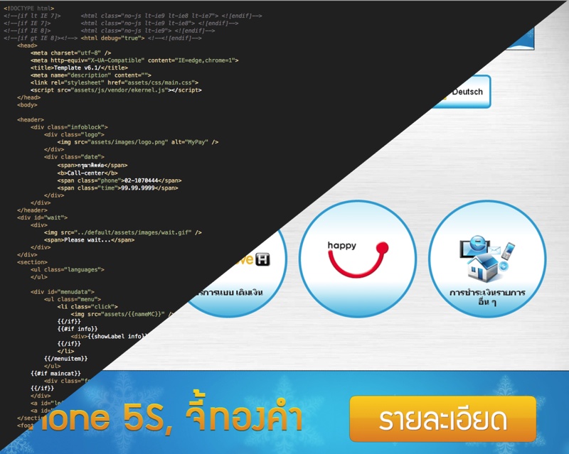 Мы рассмотрели в общих чертах модель взаимодействия ядра системы и дизайна. В следующей, заключительной главе я расскажу вам о том, что у нас был флеш, почему мы от него отказались, что сейчас у нас html и в ближайшем будущем зарелизим версию на backbone с grunt-сборкой всего и вся. Надеюсь я вас не сильно утомил. В качестве бонуса прикладываю скриншоты описанного выше процесса оплаты мобильного телефона, а так же пример сценария, используемого в примере. Скриншоты обезличены по просьбе руководства. Компанию, в которой я работаю по прежнему не называю.