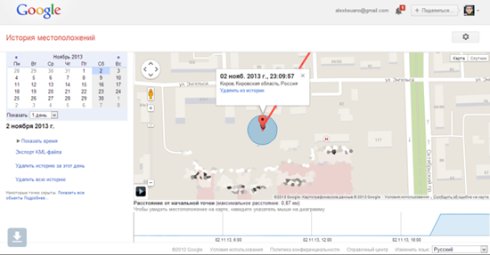 Первый способ — посмотреть историю перемещений на сайте Location History. Здесь показана карта, на которой отмечено где находился пользователь и когда. Данные собираются через GPS и Wi-Fi, доступны за все время пользования аккаунтом и никогда не удаляются автоматически.