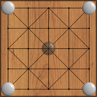 Часто бывает полезно иметь возможность дать игроку визуальную подсказку о целях игры. Иногда (как на рисунке выше), доска сама по себе является подсказкой, но если этого недостаточно (как в головоломках с движущимися кусками, например), поможет ещё одна, унаследованная от Zillions, «декоративная» опция. Если "highlight-goals" активирована, при наведении на фигуру указателя мыши, будут подсвечены те позиции, на которые её следует провести.