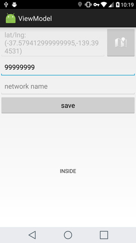 Для примера работы с ViewModel давайте реализуем небольшое приложение, позволяющее выбрать пользователю точку на карте, установить радиус и показывающее, находится человек в этом поле или нет. А также дающее возможность указать WiFi network, если пользователь подключен к нему, будем считать что он в радиусе, вне зависимости от физических координат.