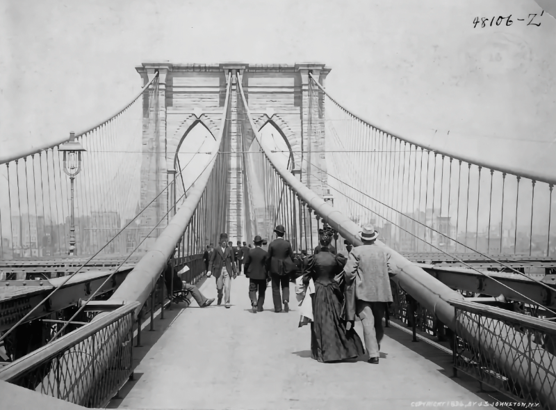 24 мая 1883 года состоялось открытие самого длинного на тот момент подвесного моста в мире, соединившего Бруклин и Манхэттен. Тогда его даже называли восьмым чудом света. В первый же день 1800 транспортных средств и около 150 000 человек пересекли по мосту пролив Ист-Ривер. Дополнительно власти прогнали 21 слона из гастролирующего неподалеку цирка, чтобы еще раз убедить людей: подвесной мост не обвалится. Собственно, он стоит и до сих пор.