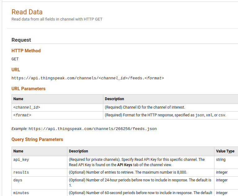 Есть API: https://www.mathworks.com/help/thingspeak/readdata.html