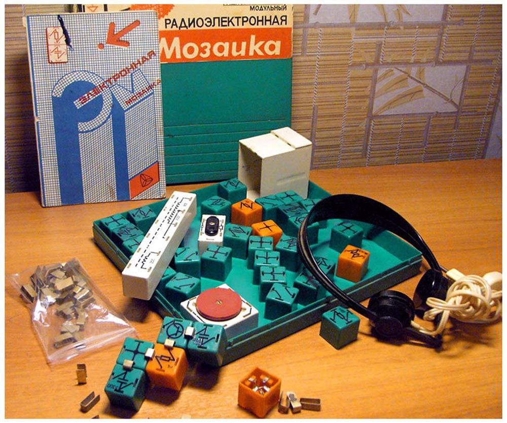 Конструктор модульный «Радиоэлектронная мозаика» с 1978 года выпускал Горьковский завод аппаратуры связи им. Попова, а позднее и АНПО ЗИП Нижний-Новгород. Из компонентов набора можно было быстро и без применения пайки, инструмента и дополнительных проводов последовательно собрать 40 различных радиоэлектронных устройств.