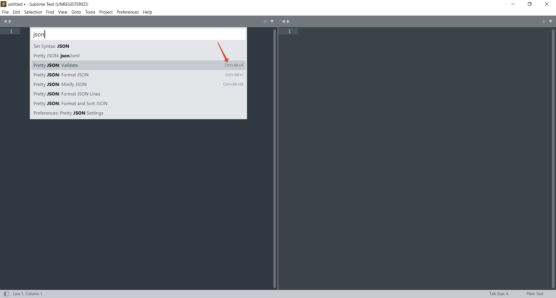 После открытия нажмите сочетание клавиш ctrl+shift+p, и напишите в поиске JSON. Если вы все правильно сделали, то теперь у вас появятся список с командами Pretty JSON: Validate, Pretty JSON: Formar JSON, Pretty JSON: Minify JSON и т.д.(Подробнее про команды и их значение в конце статьи).