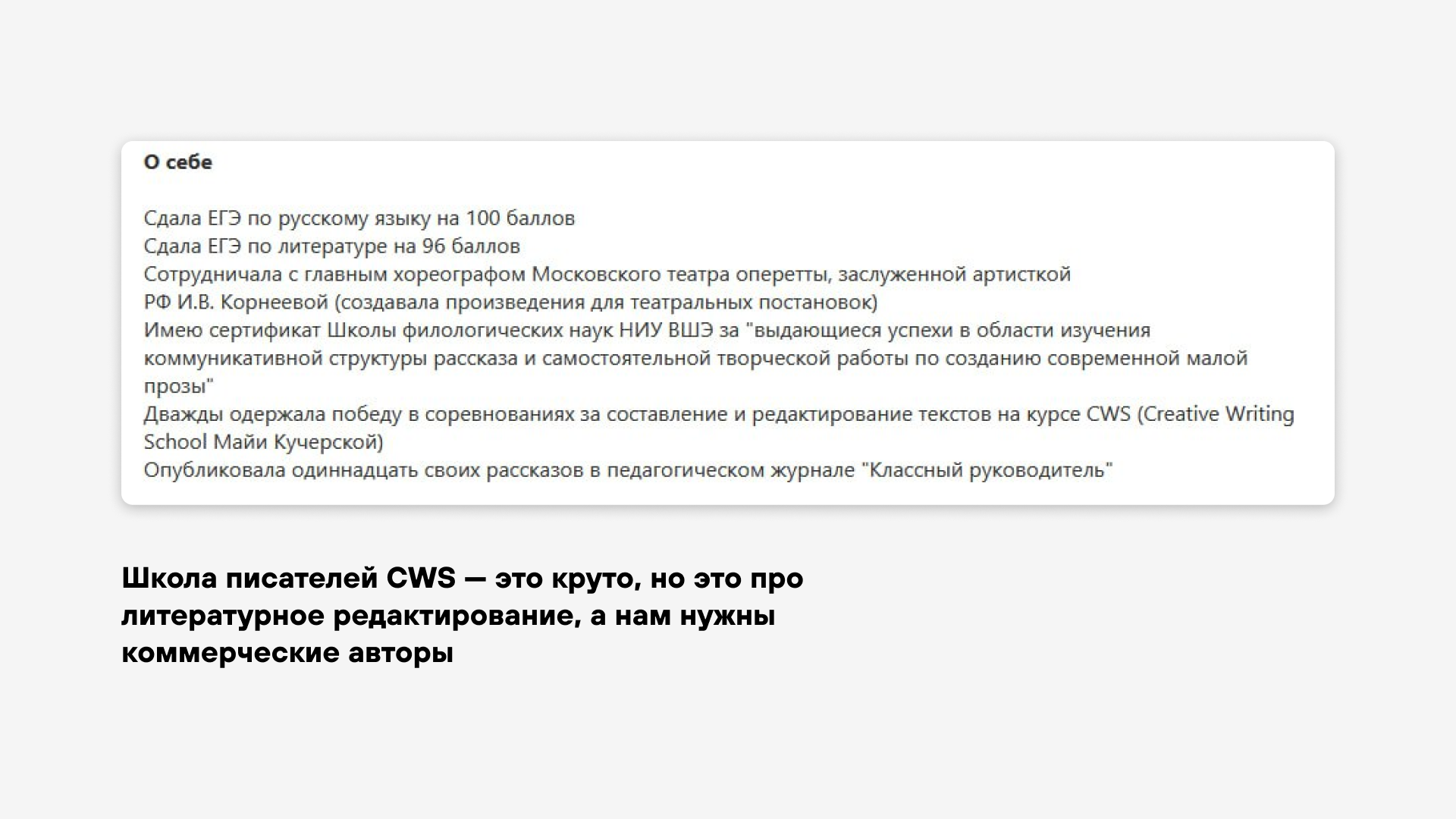 Обычно на чужие площадки мы идем только если нужно что-то специфичное. Например, сейчас у нас пришло много проектов для IT-компаний, и нужны сильные авторы с бэкграундом в IT. Мы ищем их везде — в телеграм-каналах айтишных, на hh.ru, других площадках с вакансиями.