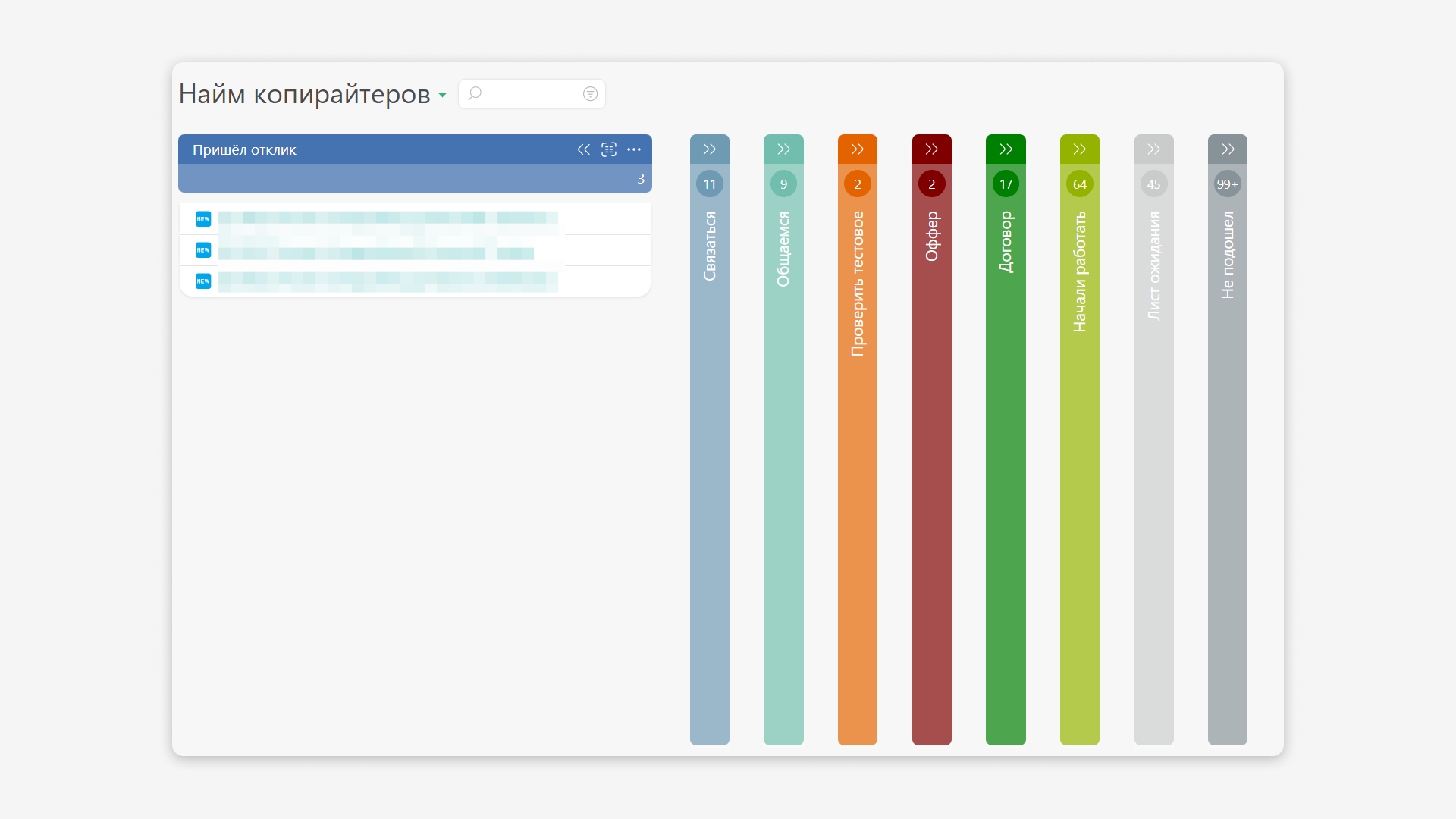 В итоге ни один отклик не теряется, и по каждому есть решение — связаться и предложить тестовое, сразу отказать или отправить в лист ожидания.