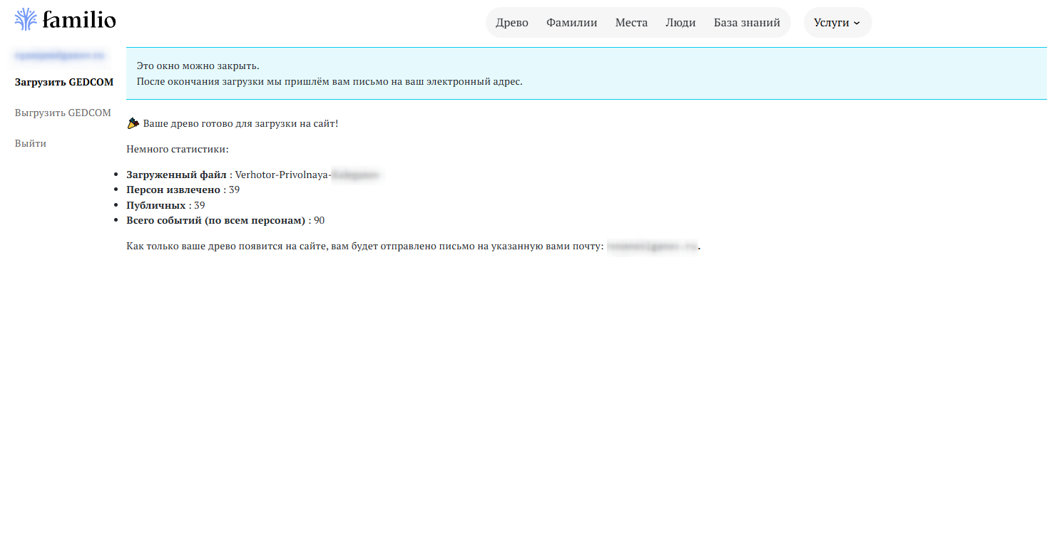 К слову, многие пользователи сначала выгружают из MyHeritage в "Древо жизни", там наводят порядок, к населённым пунктам добавляют ссылки, удаляют лишние или ошибочные персоны, а потом уже загружают на Familio сразу откорректированный файл gedcom.