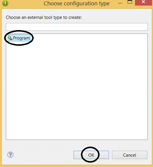 Из списка в окне выбора типа конфигурации выберем Program. Этот вариант позволяет указать расположение внешних инструментов и то, как именно нужно выполнять скрипты, осуществляющие сборку.