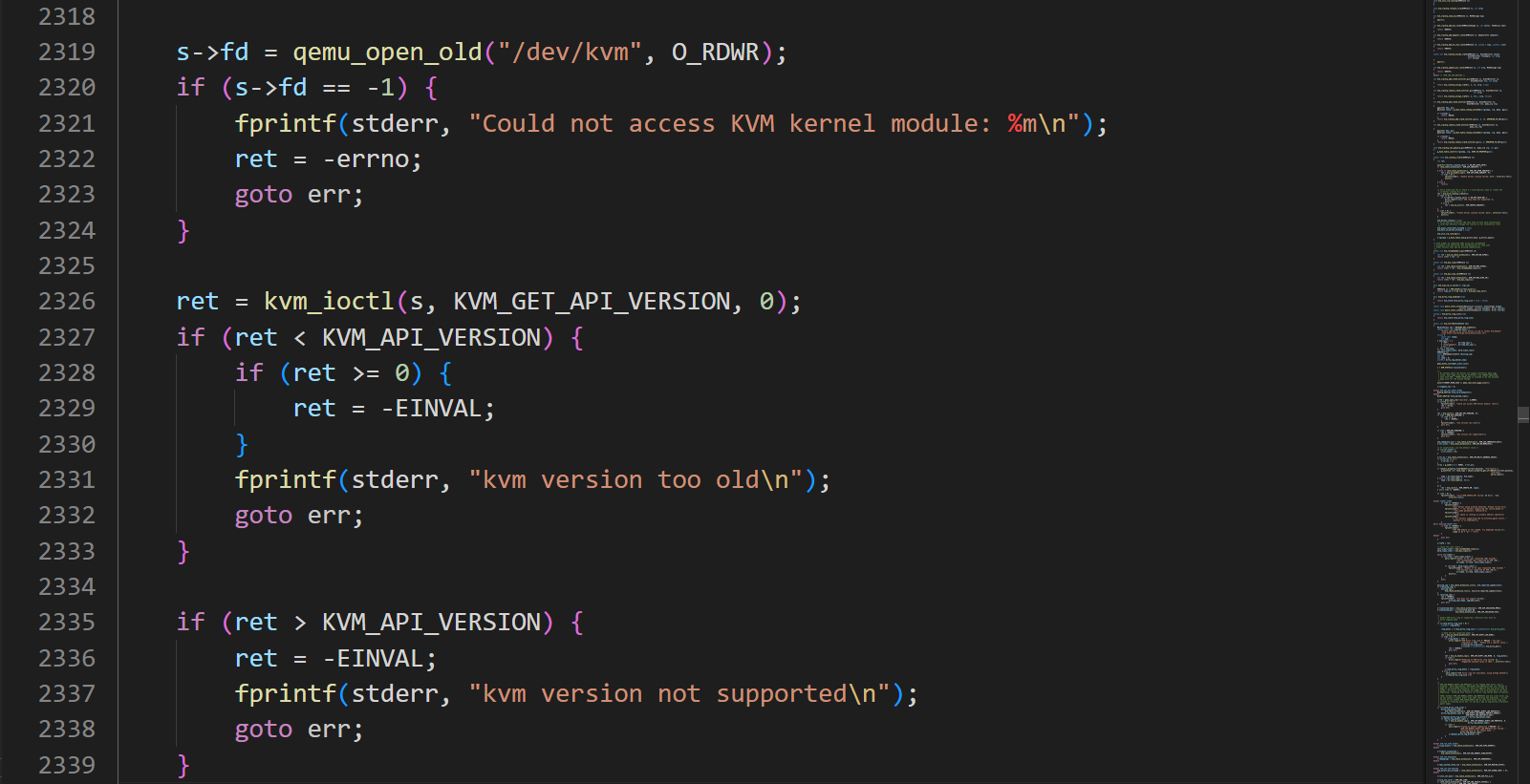 int kvm_fd = open("/dev/kvm", O_RDWR);