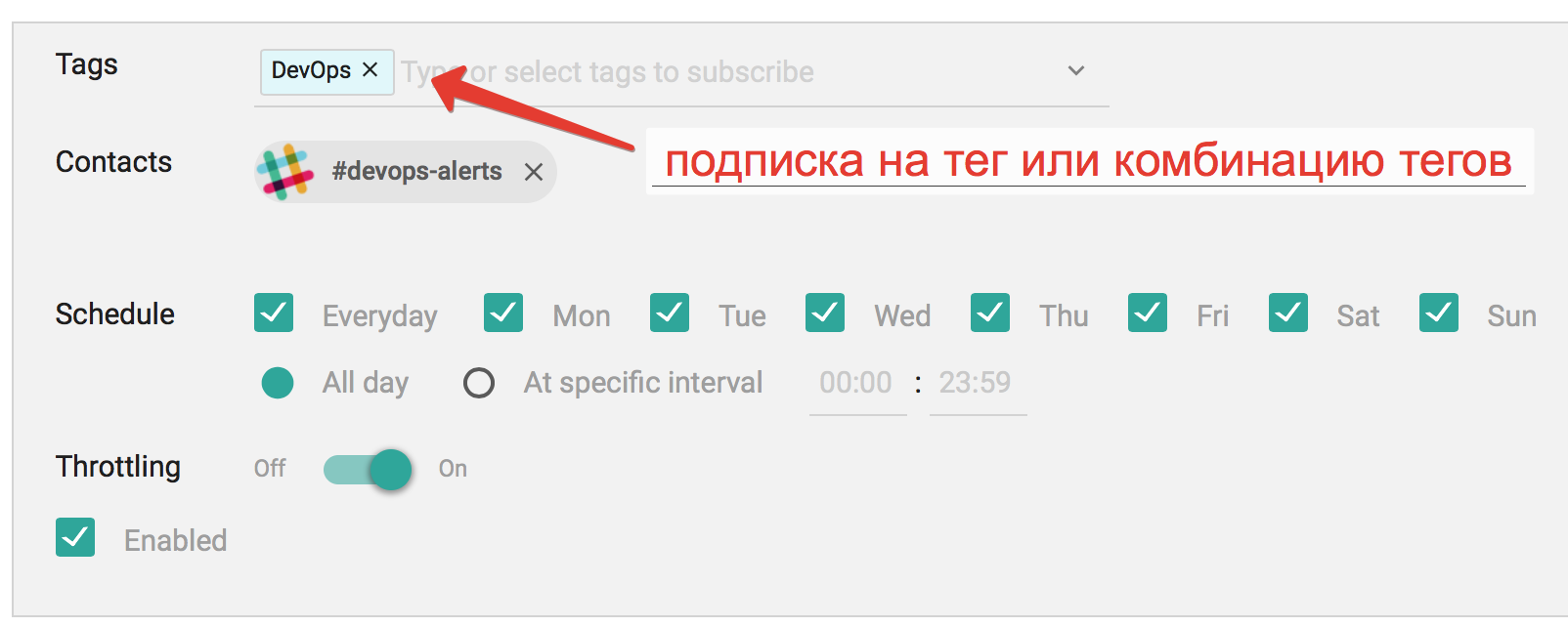Как показывать пользователю только те настройки, которые он хочет видеть? Для этого мы используем теги, которые работают как в веб-интерфейсе, так и в настройке уведомлений.