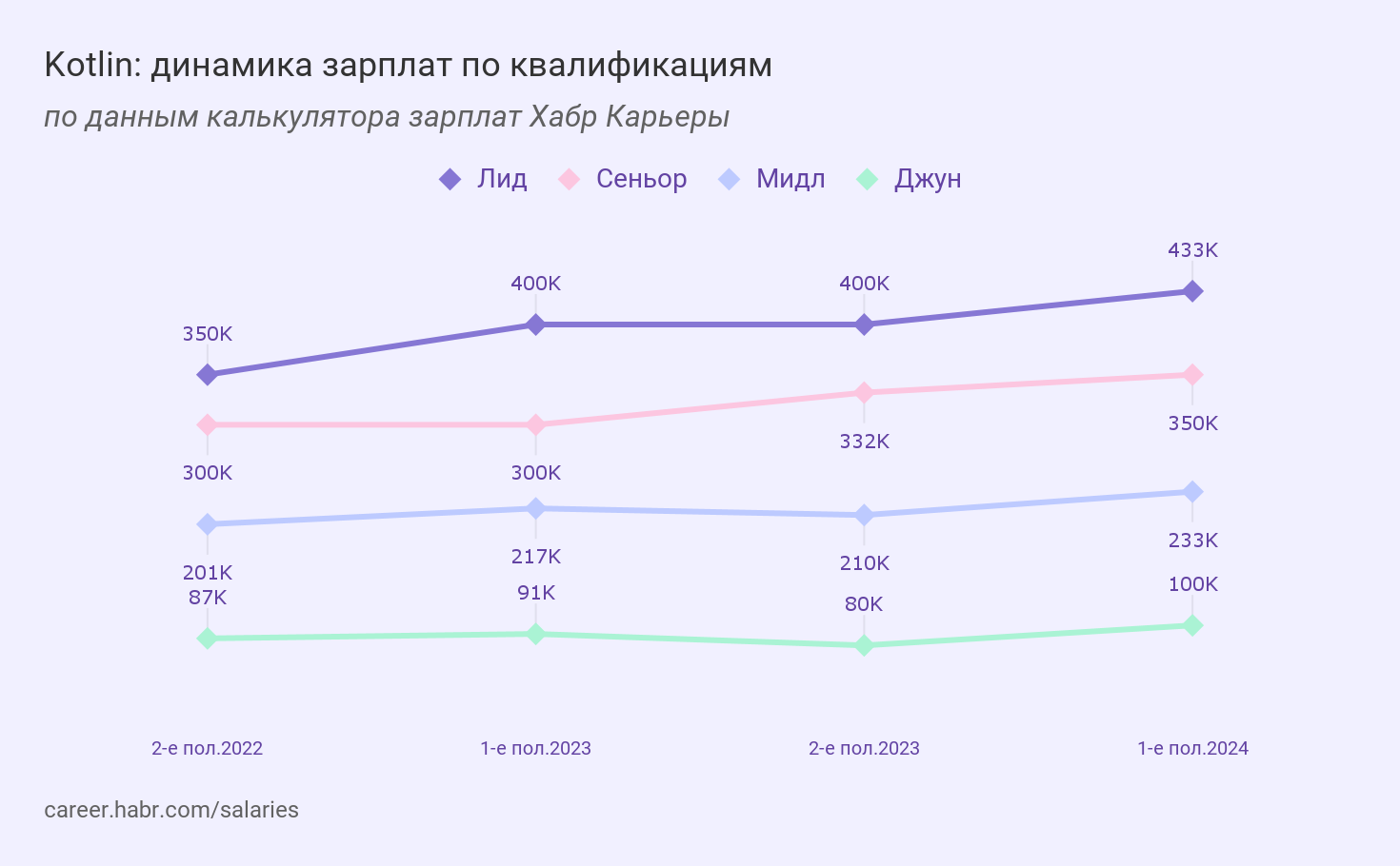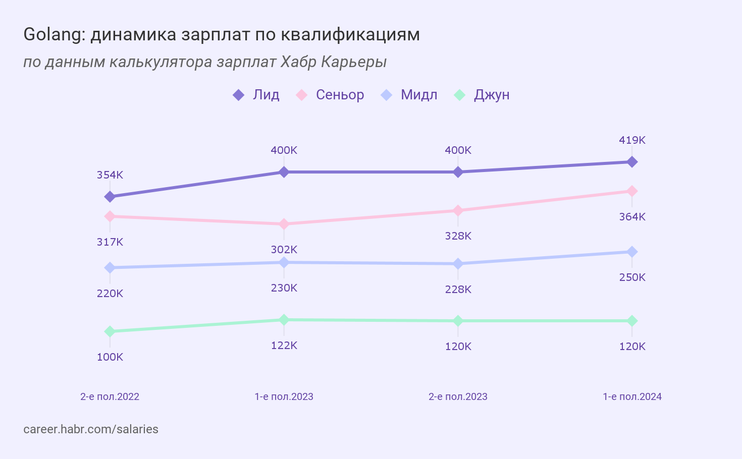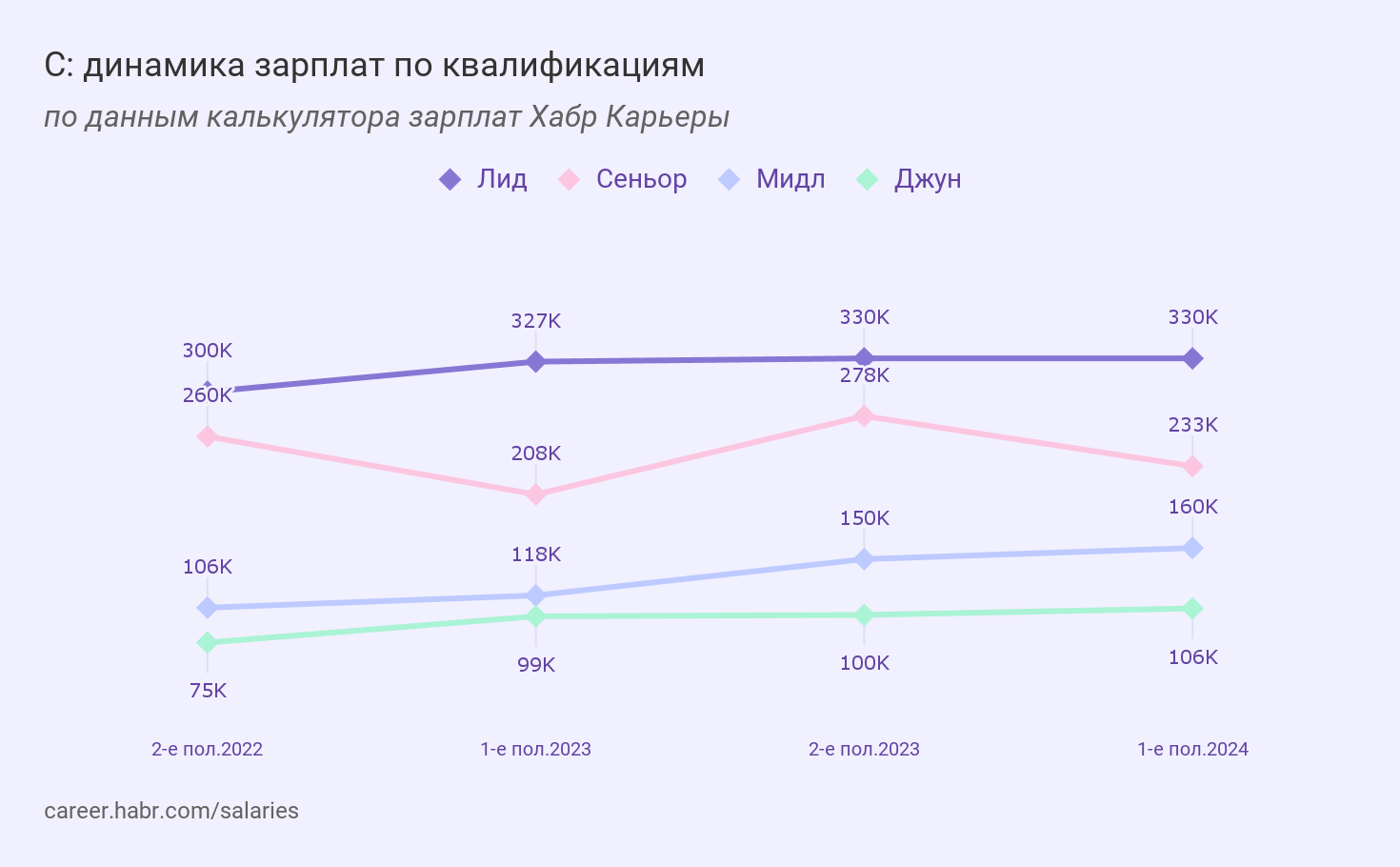 → Смотреть зарплаты в калькуляторе Хабр Карьеры.