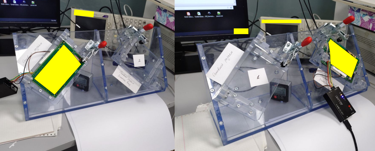 Прежде чем устанавливать электронную плату надо выровнять плоскость стенда. Для этого надо подкладывать под стенд листки до тех пор пока пузырек уровня по X и Y не станет показывать ноль. Только после этого можно аккуратно монтировать электронную плату.