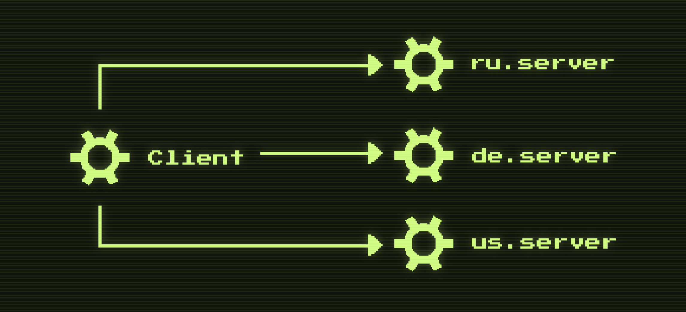 Есть ещё одна интересная ситуация, когда у нас есть один клиент и много серверов, которые расположены на разных хостах.
