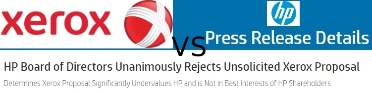 Cовету директоров компании HP до 25 ноября 2019 года предлагается согласиться на проведение взаимной юридической экспертизы между HP и Xerox по поводу слияния компаний. В противном случае Xerox может начать процедуру выкупа акций HP напрямую у акционеров компании, причем эти действия совет директоров HP не сможет запретить.