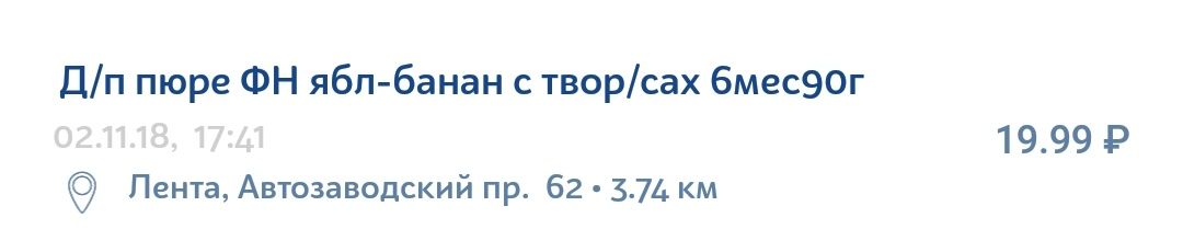 Например, детское яблочно-грушевое пюре с творогом запросто может быть записано в чеке вот так: