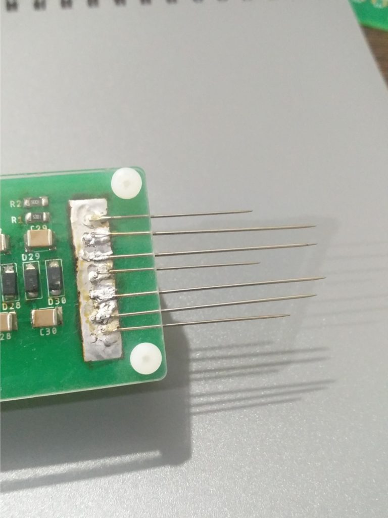 Я припаял семь иголок к выходной площадке. Чем больше, тем лучше. Разница в длине значения не имеет.