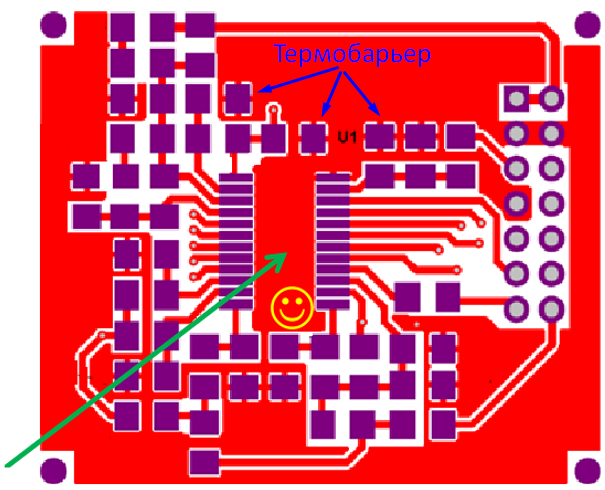 Кстати, пады в силовой электронике лучше подключать напрямую к полигону, а не с термобарьером, как на картинке. (Спасибо моему товарищу за подсказку, сразу не заметил).