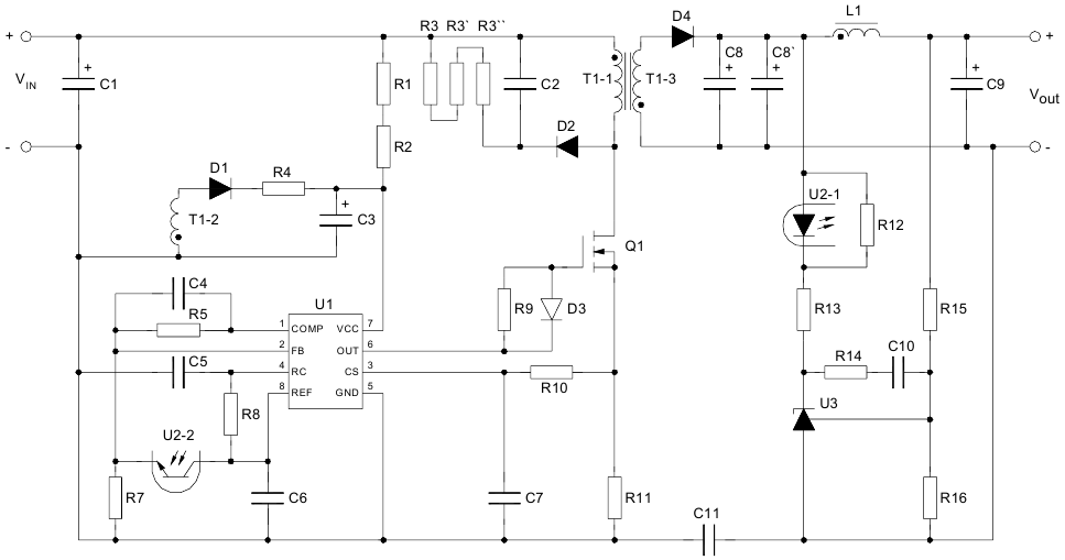 Схема рождается с выбора топологии. Выбор, во многом, определяется поставленной задачей. К примеру, важна мощность преобразователя, габариты, стоимость, какие-то специальные требования. Часто используются определённые типовые решения и даже части схем. Например, разные схемы выпрямления, фильтров или защитных цепей. В обратноходовом преобразователе это могут быть типовые схемы снабберов или демпферов. Удачно выбрать ту или иную схему, решение – это целое искусство, постигаемое с опытом. Разные топологии, типовые схемы, элементы схем и другое очень хорошо описано в алфавите силовой электроники.
