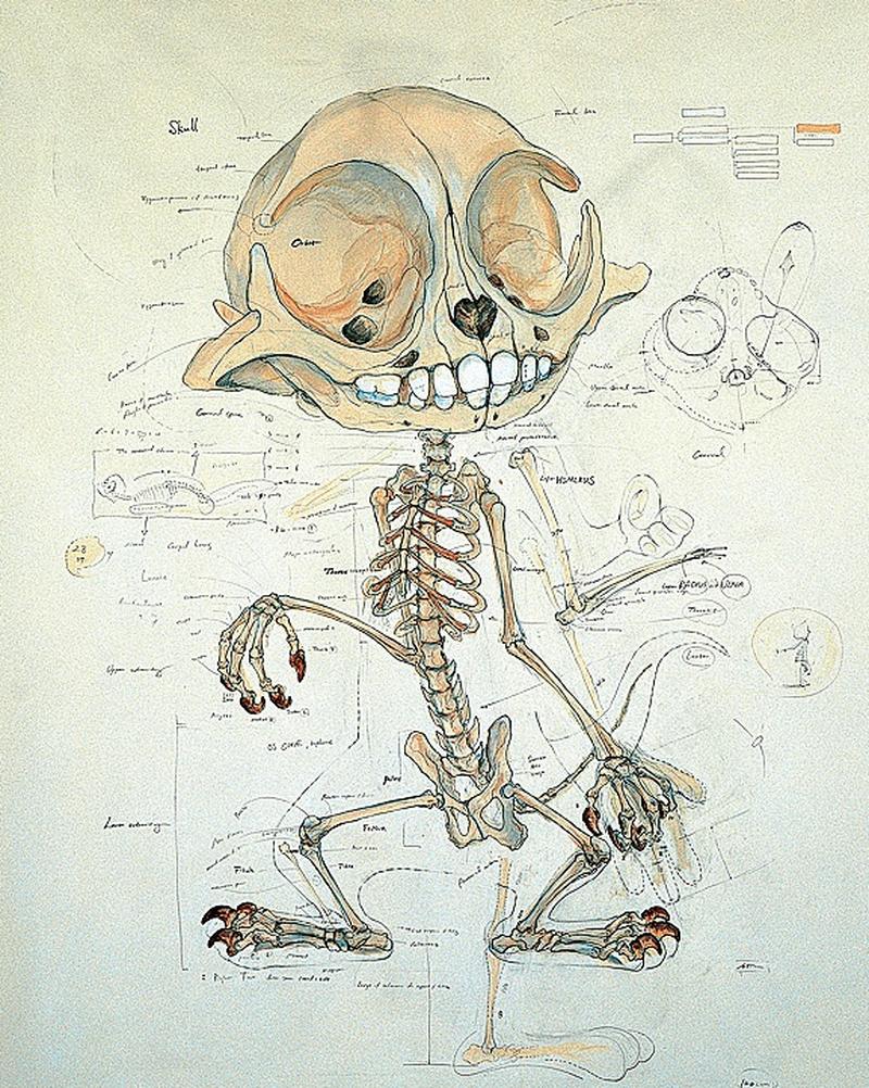 Всего Хьюнко Ли создал 11 скелетов — работа над каждым может длиться по несколько месяцев. Первым выставочным образцом стал скелет хорошо известного кролика Багза Банни, который получил латинское наименование Lepus Animatus. Он легко узнаваем по огромным передним зубам — хотя кролик без ушей выглядит, прямо скажем, непривычно. Не менее странно смотрятся уже упомянутые Том и Джерри. Если внимательно вглядеться в верхние лапы (руки?) Тома в мультике, то сразу становится понятным, что скелет у героя вовсе не кошачий. Гипертрофированные огромные когти, длинные многосуставчатые пальцы. Такими их и сделал Хьюнко Ли.