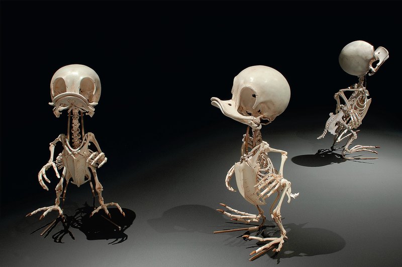 К примеру, изготавливая трио скелетов утят Вилли, Билли и Дилли, Хьюнко был вынужден сделать их клювы (которые у настоящей утки не имеют полноценной костной структуры) цельнокостяными: в мультиках утята неоднократно долбят ими различные предметы, а клювам хоть бы хны. Кстати, художник (в отличие от меня) различает трех племянников Дональда в их анатомическом виде. Я же, как ни рассматривал, так и не смог понять, чем различаются утята.
