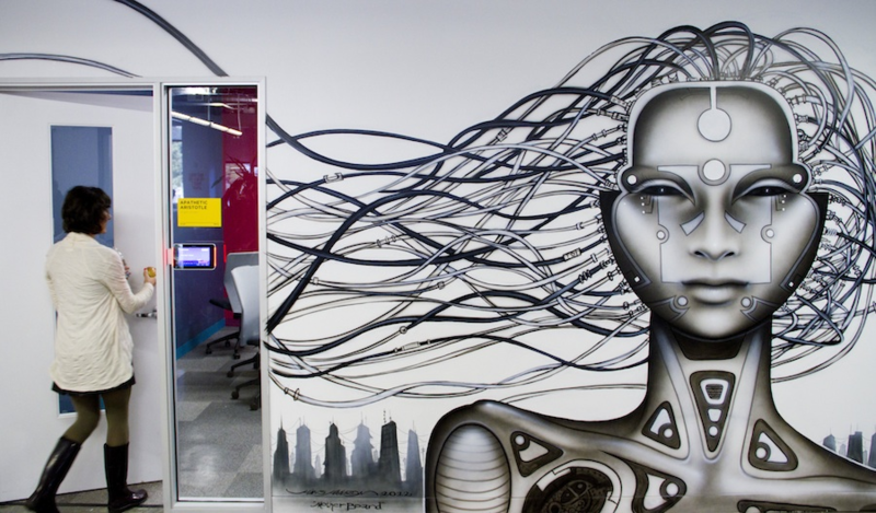 Многие стены в офисе Facebook разрисованные:
