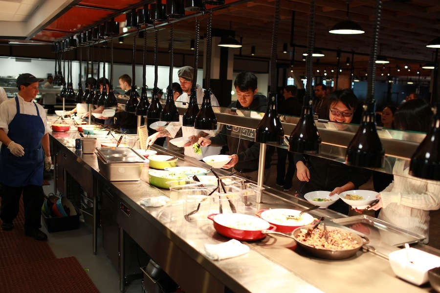 В кафетерии сотрудники Facebook получают трехразовое бесплатное питание:
