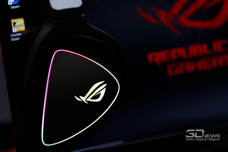 Гарнитура наделена 50-миллиметровыми динамиками Essence. Реализована многоцветная RGB-подсветка с поддержкой фирменной технологии синхронизации Aura Sync.