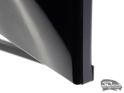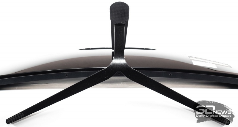 Модель получилась действительно простой, без каких-либо акцентов. Центральная стойка прикручивается двумя винтами к задней части корпуса в нижней трети, а VESA-крепление отсутствует, как и система прокладки кабелей.