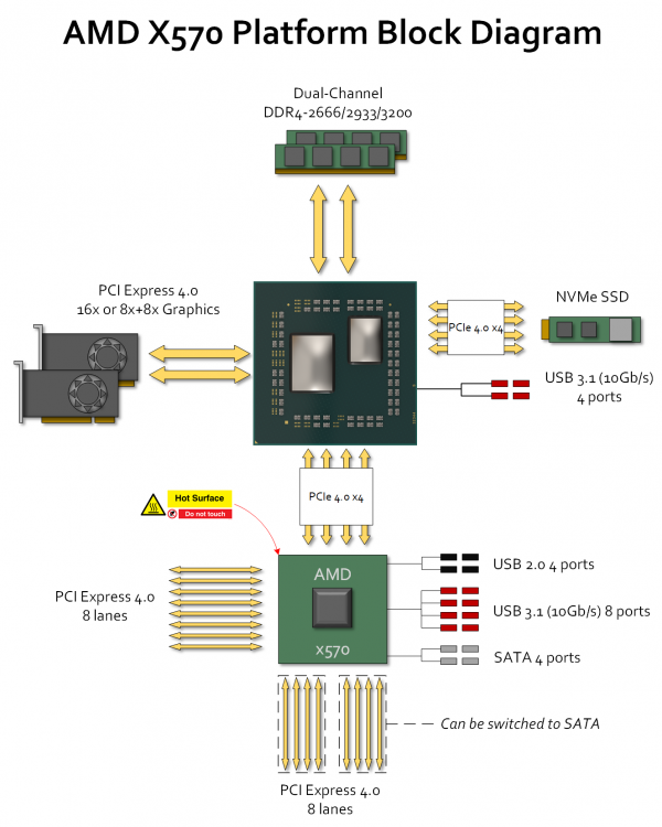 Значит ли это, что приобретение плат, основанных на X570, лишено практического смысла? Отнюдь нет: в дополнение к новой версии PCI Express этот чипсет предлагает заметно улучшенные возможности для реализации и других внешних интерфейсов. В нём заложено большее количество линий PCI Express для дополнительных устройств и слотов расширения, а также поддерживается большее число скоростных портов USB 3.1 Gen2.
