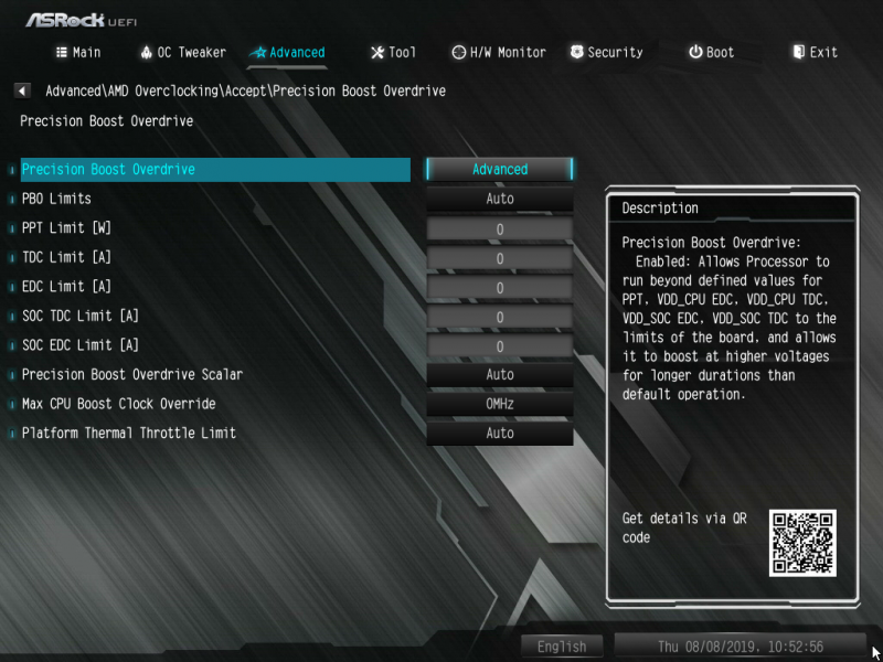 Например, среди настроек BIOS взятой нами для проверки платы ASRock B450M Pro4 нашлись средства для изменения всех четырёх основных констант технологии Precision Boost Override: