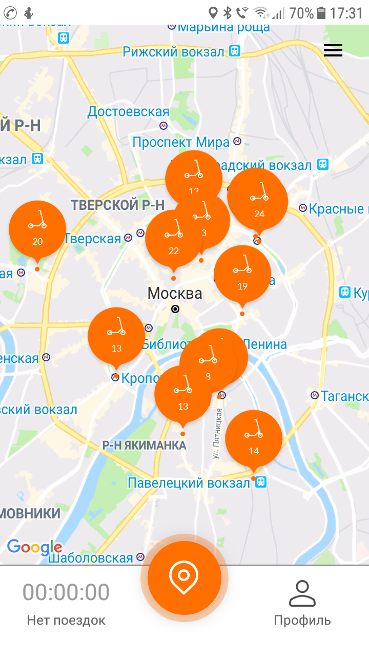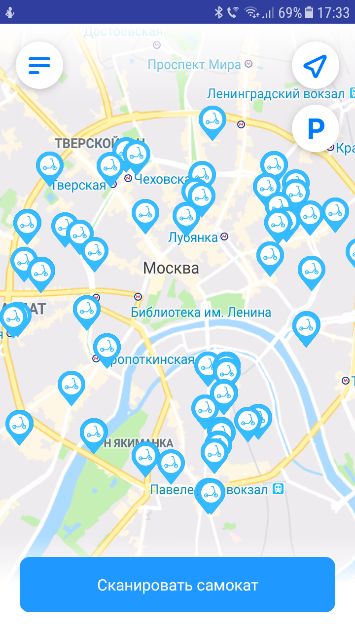 Процедура аренды следующая: вы запускаете приложение, и находите ближайший к вам самокат. Вы также можете сразу видеть уровень его заряда (в виде примерного пробега).