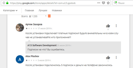 Таким образом, в зависимости от настроек управляющего сервера и поступающих от него указаний троянец может не только рекламировать приложения в Google Play, но и незаметно загружать любые сайты, в том числе с рекламой (включая видео) или другим сомнительным содержимым. Например, после установки приложений, в которые был встроен этот троянец, пользователи жаловались на автоматические подписки на дорогостоящие услуги контент-провайдеров.