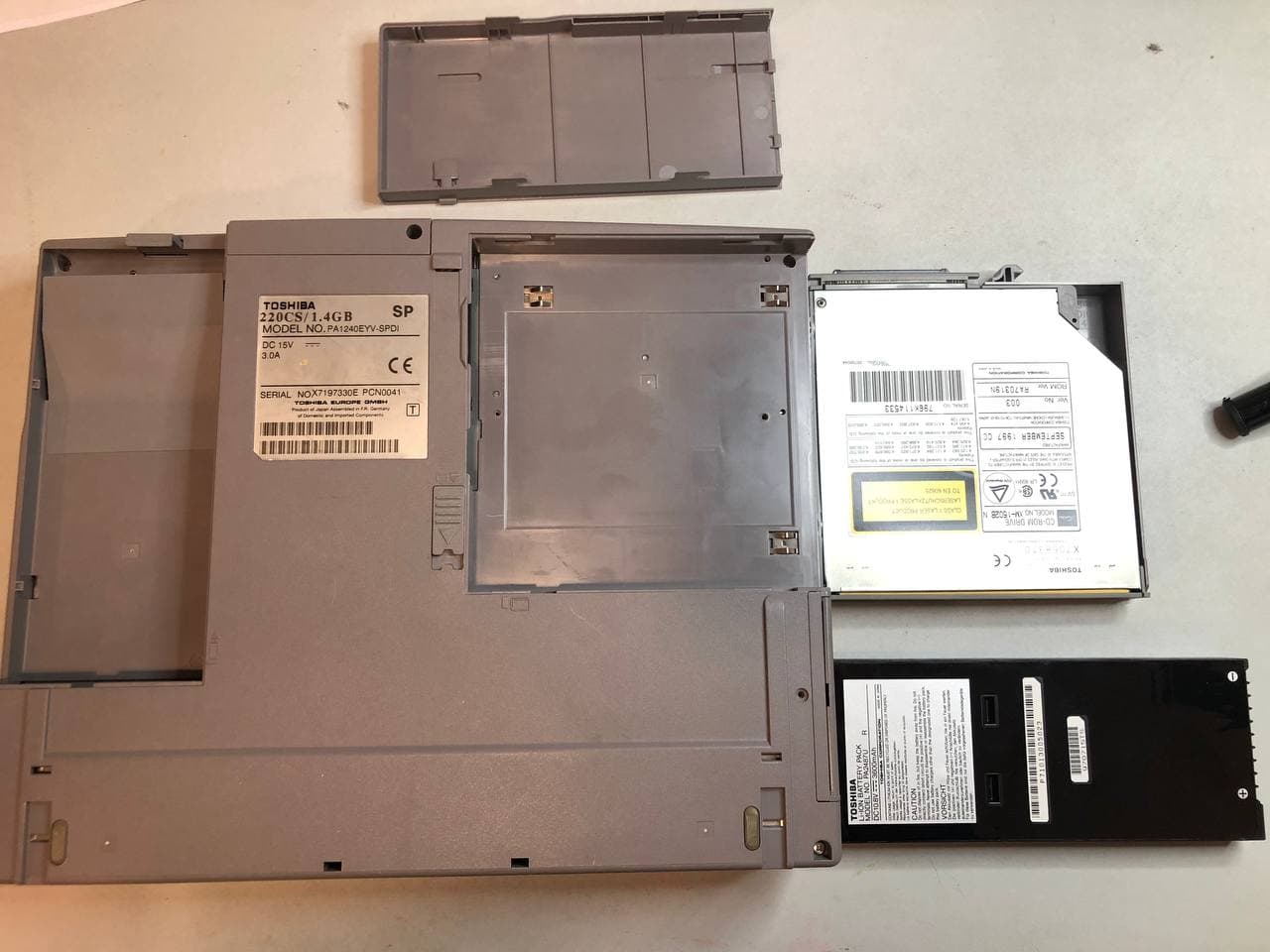 Герой сегодняшнего обзора — именинник, Toshiba Satellite 220CS, который, как можно понять по наклейке на крышке, попал к своему владельцу в 1999 году, 12 февраля. Так что сегодня оценим качество сборки, работоспособность и все остальное. Скажу сазу, лэптоп рассчитан на Windows 95, но то ли жесткий диск нерабочий, то ли загрузочный раздел затерт — ноутбук указывает, что нужно вставить системный диск. Но как бы там ни было, этот девайс почти в идеальном состоянии, так что сегодня будет не софтовый (что мы там в Win95 не видели?), а «железный» обзор. Bienvenido под кат!