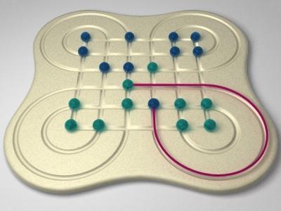 В этих играх, фигуры могут выстраиваться в «столбики». Такой «столбик» может перемещаться целиком, как единая фигура. После некоторого размышления, я решил, что лучше не отказываться от автоматической реализации «шахматного» взятия, а усовершенствовать механизмы перемещения групп фигур. Действительно, для реализации «столбиков», всегда можно добавить к доске ещё одно измерение (это тем более просто, поскольку модуль визуализации будет отделён от модулей генерации ходов и AI и в нём можно будет использовать любую логику отображения трехмерной доски на её двумерную визуализацию). Дополнительным доводом, в пользу этого решения, явилось то, что «столбовое» перемещение фигур не является единственным видом группового перемещения. Например в "Пентаго" фрагменты доски могут поворачиваться, вместе с установленными на них фигурами.