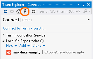Страница Connect (Установить подключение) — это нововведение, появившееся в Visual Studio 2012 Update 2. На этой странице показаны и доступны для контроля все репозитории, в которых осуществляется управление версиями.
