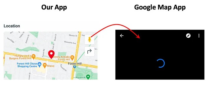Сложность в том, что есть Webview (внутри нашего приложения) и приложение Google Maps. И то и другое — продукты Google. У нас нет доступа к коду.