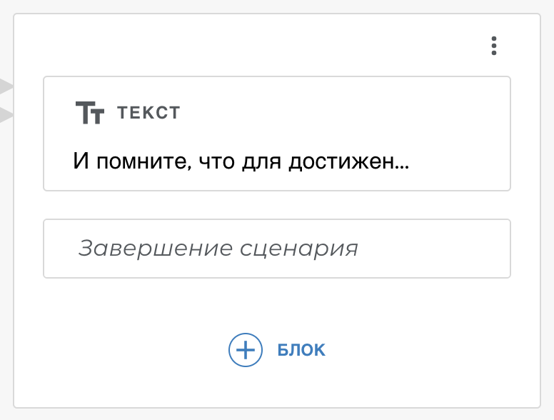В “Йоге для глаз” пользователь всегда может сказать “Хватит” или “Мне надоело”, чтобы завершить занятия. В Aimylogic есть блок Завершение сценария — мы использовали его в своем диалоге, чтобы попрощаться с пользователем и завершить наш Action.