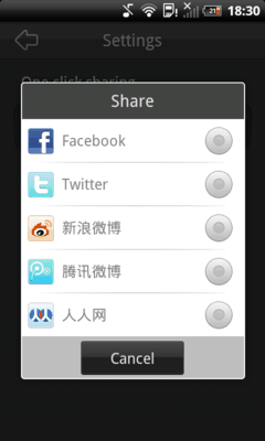 Эта программа также радует нас достаточно приятным интерфейсом, элементы которого разделяют приложение на два основных раздела – собственно съемка и галерея. Прежде чем углубляться в детали съемочного процесса, советуем обратиться к настройкам и выбрать социальную сеть, наиболее предпочтительную для быстрых публикаций ваших снимков. Необходимо лишь иметь в виду, что «one-click» здесь настоящий, и после авторизации нужного сервиса любое неосторожное нажатие может повлечь за собой пополнение вашего онлайн-архива с изображениями. Кроме того, из популярных сервисов представлены только Twitter и Facebook, а для хранения снимков сравнительно высокого разрешения все-таки лучше пользоваться специализированными фотохостингами.