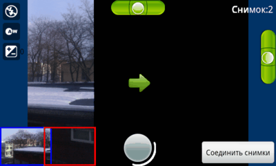 Схема работы, используемая в Pano, может считаться классической для подобного рода занятий. Вы делаете обычный снимок, и после короткой паузы на экране остается лишь его часть, с которой необходимо максимально точно совместить следующую фотографию. Каких-либо строгих ограничений на количество снимков в серии не предусмотрено. Как показала практика, до восьми фотографий программа склеивает без проблем, а время обработки снимков увеличивается весьма незначительно.