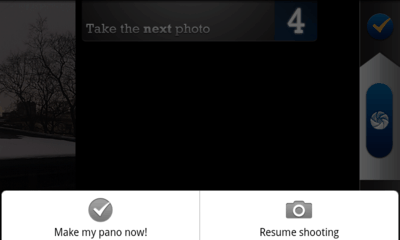 Когда вы захотите полюбоваться на результаты своего труда, достаточно будет нажать на кнопку с изображением галочки и немного подождать. Полученная панорама легко прокручивается слева направо, а поделиться ей с друзьями в социальных сетях можно прямо из приложения.