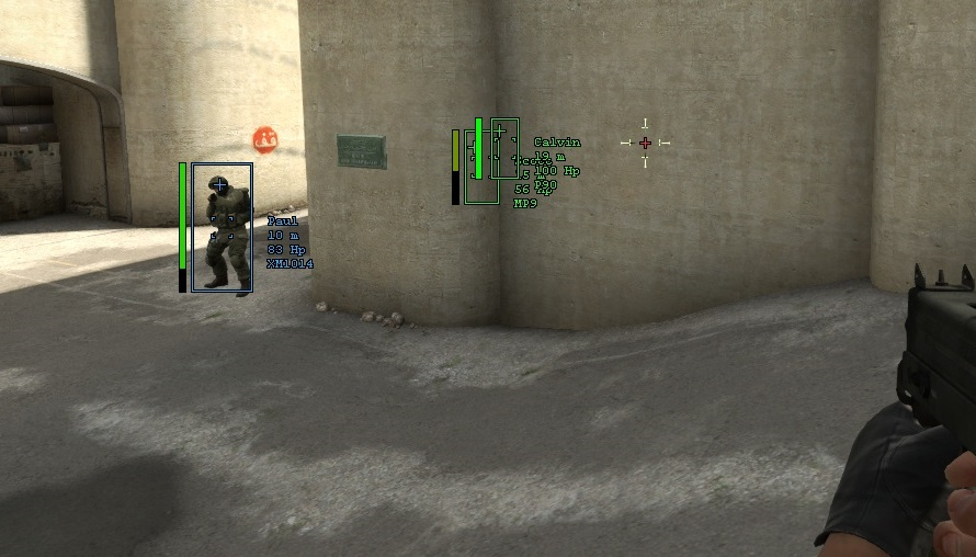 Тот самый ВХ, который позволяет видеть через стены. Может быть совсем убогим и просто рисовать квадратики вокруг врагов. А может иметь кучу настроек: покраску головы в яркий цвет или подсвечивание моделей игроков, показывать жизни, броню, хитбокс, оружие.