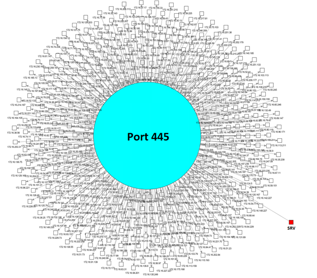 При анализе логов межсегментных межсетевых экранов в период с первой аутентификации на хосте SRV по УЗ root и до момента инцидента были выявлены множественные попытки установления соединений с сервера на различные ресурсы компании по протоколу smb. Вероятнее всего, целью была парольная или другая значимая для проникновения информация.